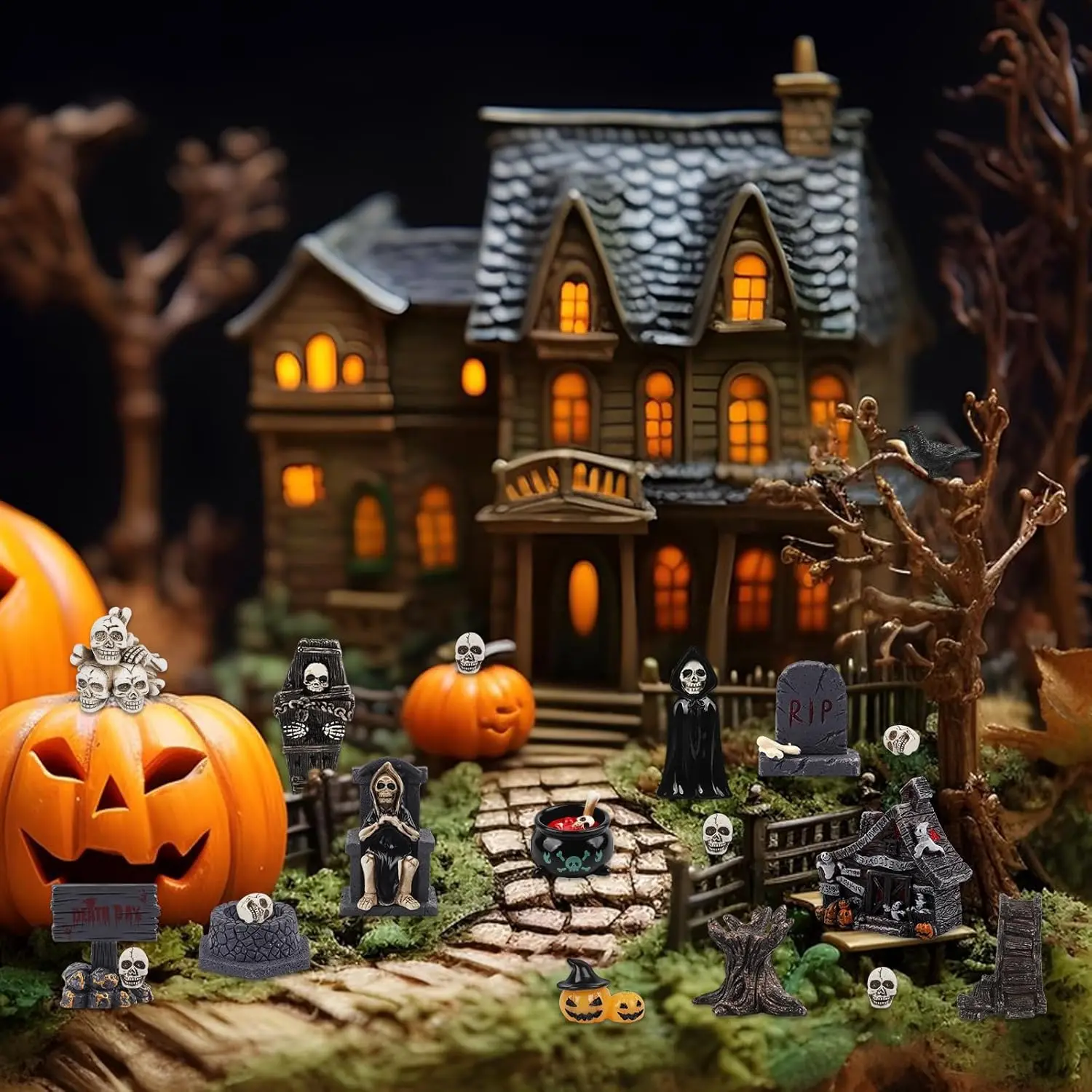 High Quality Material: Our tiny Halloween village figurines are made of high-quality resin, exquisitely crafted, safe and non-toxic, not easily broken or faded, with extremely high durability, and can maintain good condition after long-term use