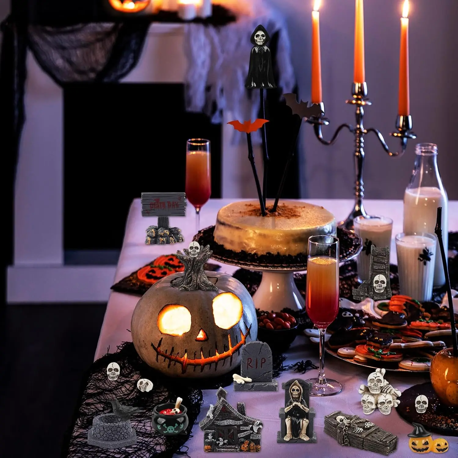 Widely Applicable: Halloween miniatures figurines are suitable for Halloween parties, horror parties, haunted house parties, etc. Halloween resin figurines can also be placed on dining tables, fireplaces, bookshelves, living rooms, classrooms, offices